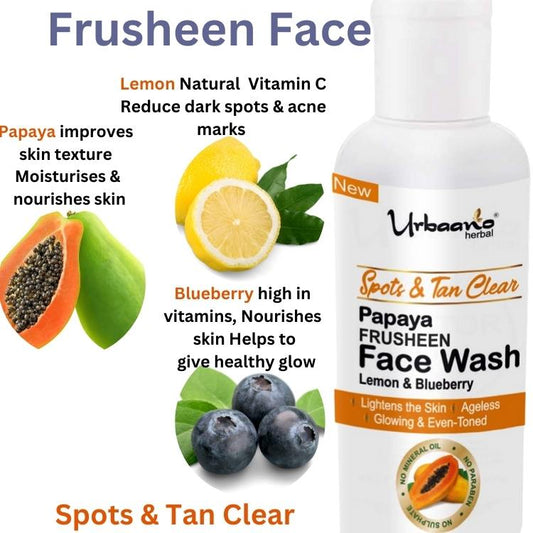 Frusheen Papaya Spot & Tan Clear Face Wash Enhances Glow & Brighten Skin