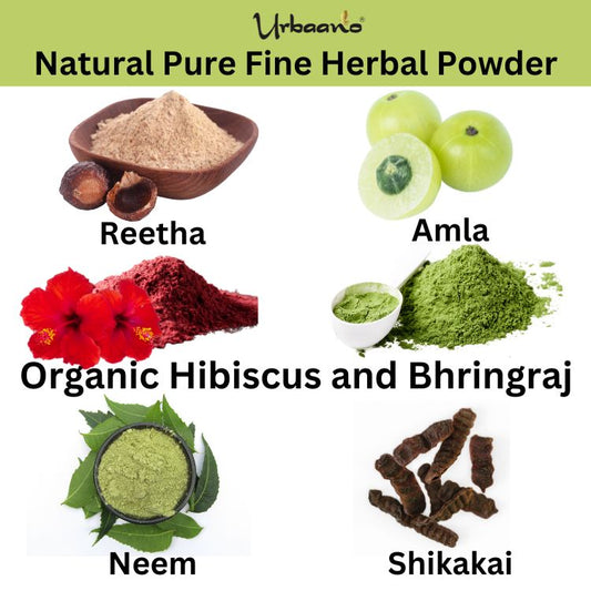 Natural Hair Growth Mask, Set 6 Herbal Powder - Amla, Reetha, Shikakai, Neem, Organic Bhringraj, Hibiscus